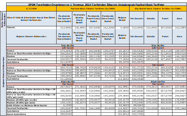 Sanayi elektrik fiyatları ve ticarethane elektrik fiyatları tablosunu inceleyerek bilgi alabilirsiniz.